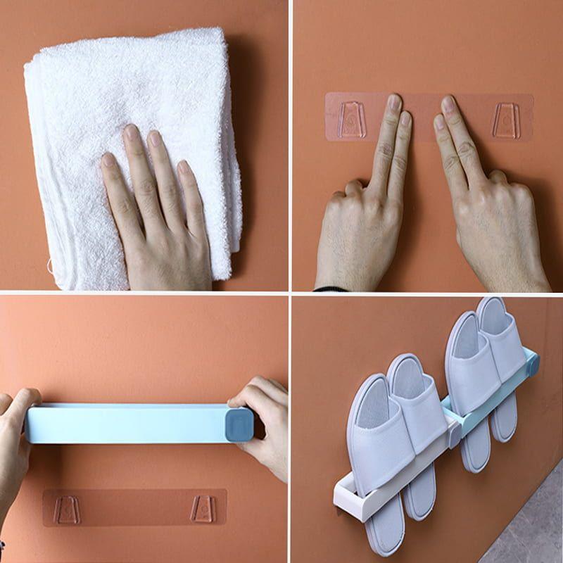 Folding Slippers Holder Shoes Hanger Adhesive Storage Towel Bathroom Slippers Wall Mounted Shoe Organizer