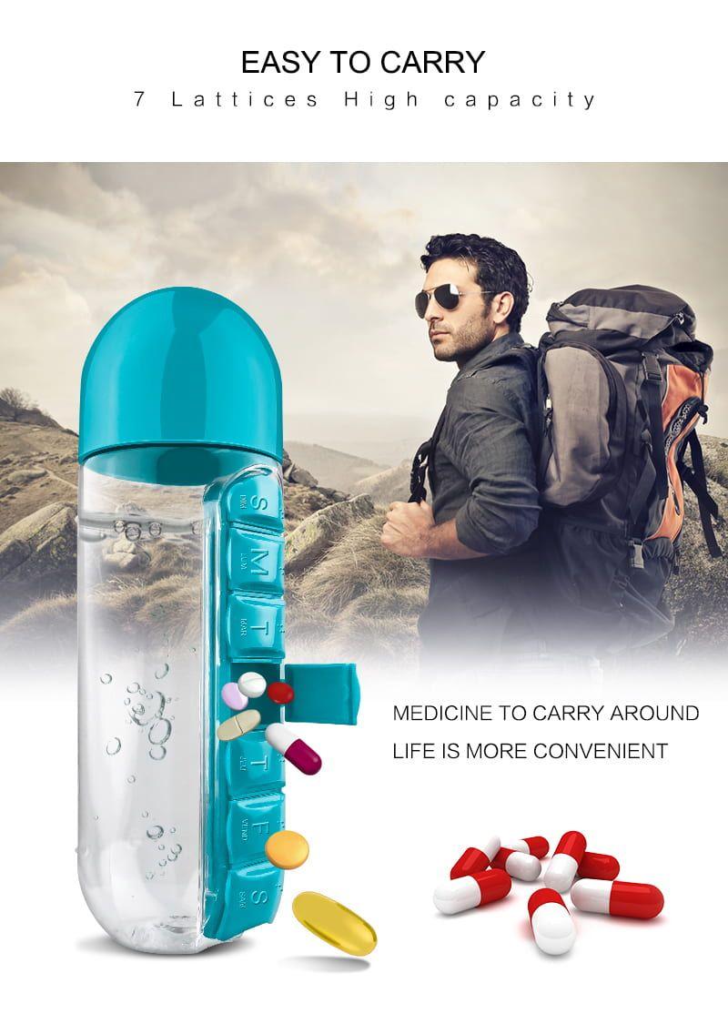 - Other detail: Bottle,Cup,Outdoor sport,Plastic bottle,With pill box