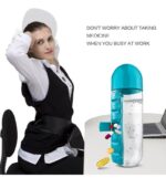 600ml Sports Plastic Water Bottle Combine Daily Pill Boxes Organizer Drinking Bottles Leak-Proof Bottle Tumbler Outdoor Product Description: New material eco-friendly storage with BPA There are 7 pill boxes on the bottle which can carry some pills if necessary. Good for hiking or outdoor camping and so on Spray perfect combination with drink. Resistant to slam cup body is grade polycarbonate. Specification: Material: PP+PC (BPA ) Gross Weight(about) : 150g Capacity: 600ml Size(about): 8cm x23.5m Package Included: 1* Sport Water Bottle Note: It is manual measurement, there may be 1-2cm error. Thank you! Due to lighting effect and computer color, the actual colors may be slightly different from the picture.