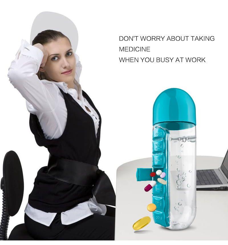 - Other detail: Bottle,Cup,Outdoor sport,Plastic bottle,With pill box